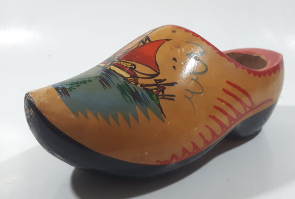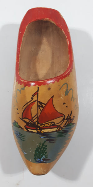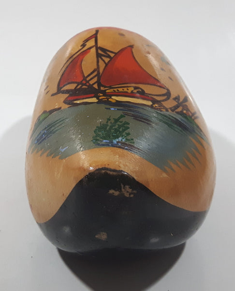 Vintage Holland Dutch Sailboat 7" Long Hand Painted Wood Clog Shoe