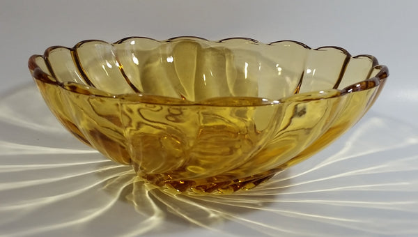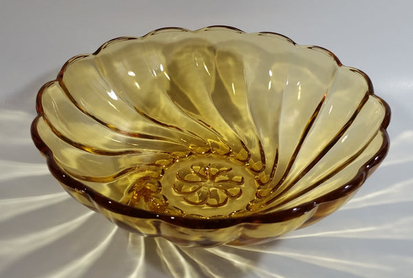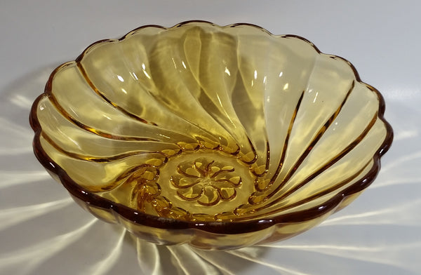 Vintage 9" Diameter Hazel Atlas Yellow Amber Swirl Depression Glass Fruit Dessert Bowl