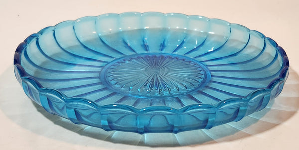 Vintage Starburst Pattern 8" Aqua Blue Depression Glass Platter Dish