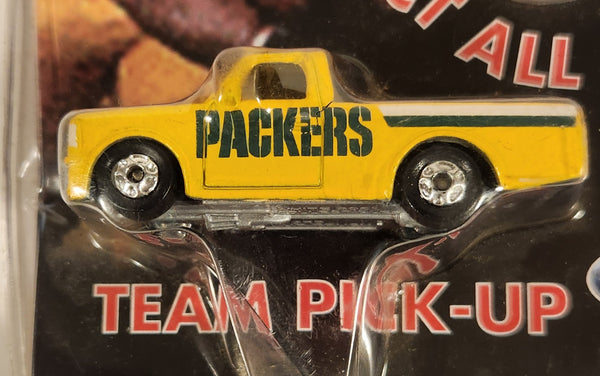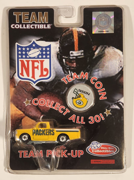 1998 White Rose Collectibles NFL Team Collectibles Green Bay Packers Pickup Truck Yellow Die Cast Toy Car Vehicle with Team Coin New in Package