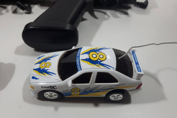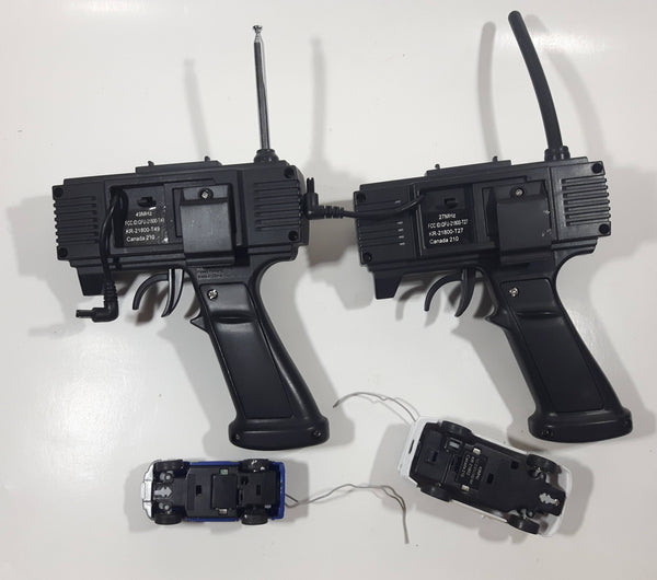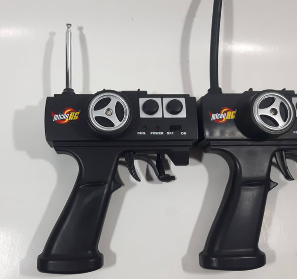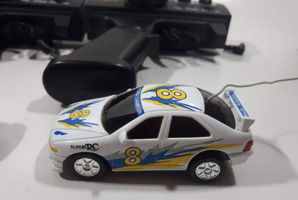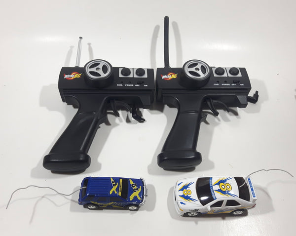 2002 Micro RC #8 White and #22 Blue Plastic Toy Car Remote Control Vehicles Set of 2 Cars and 2 Controllers