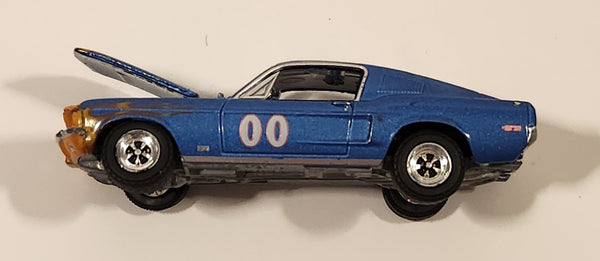 2007 Greenlight 1968 Ford Mustang GT Fastback 00 Blue Die Cast Toy Car Vehicle with Opening Hood