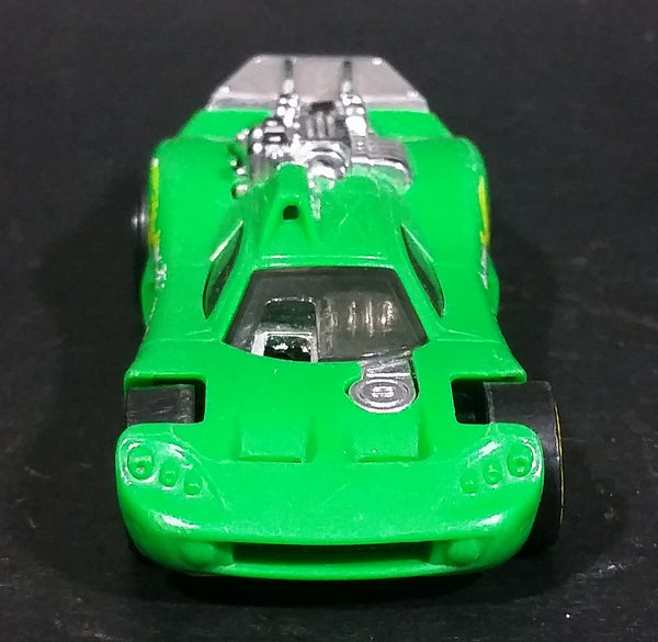 G14 - Lime Green flames with black and white 05 Hot Wheels Stunt Team - Tinted - Chrome Interior - White Rimmed Black Open Hole 5 Spoke Rear Wheels with Yellow 10 Spoke Front Wheels - Thailand