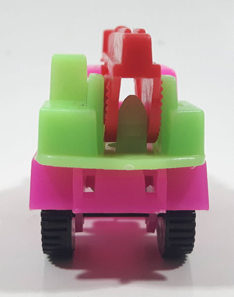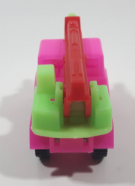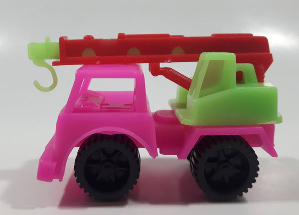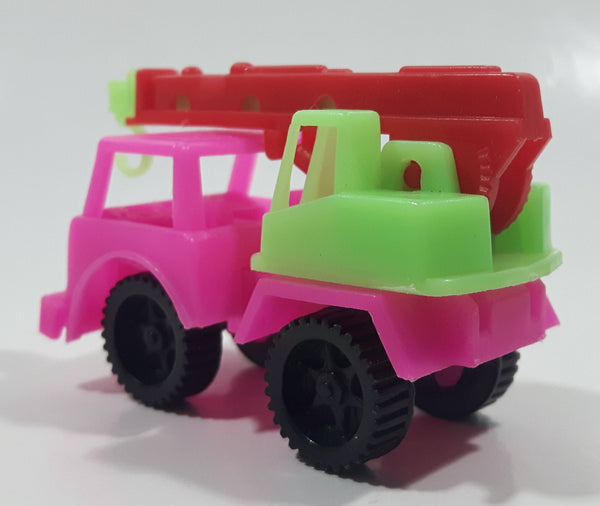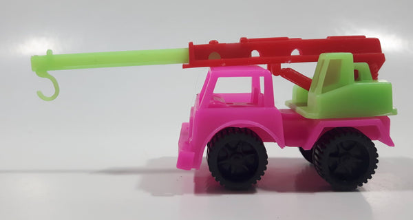Crane Truck Hot Pink and Green with Red Boom Plastic Toy Car Vehicle