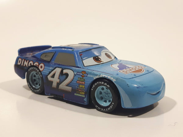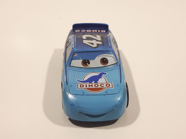 Disney Pixar #42 Lightning McQueen Dinoco Blue and Light Blue Plastic Body Die Cast Toy Car Vehicle
