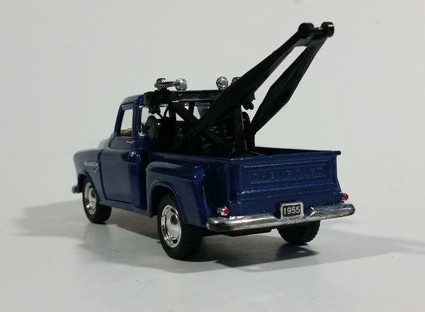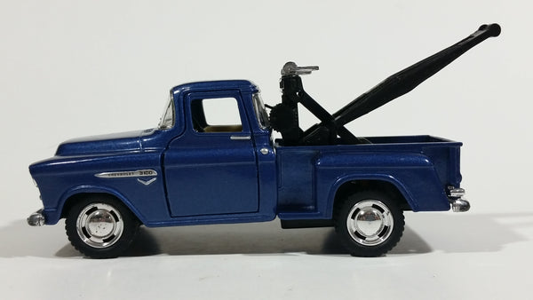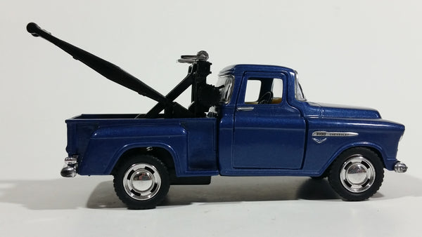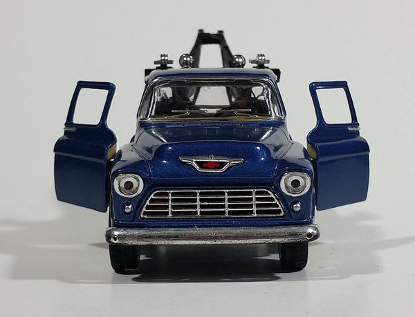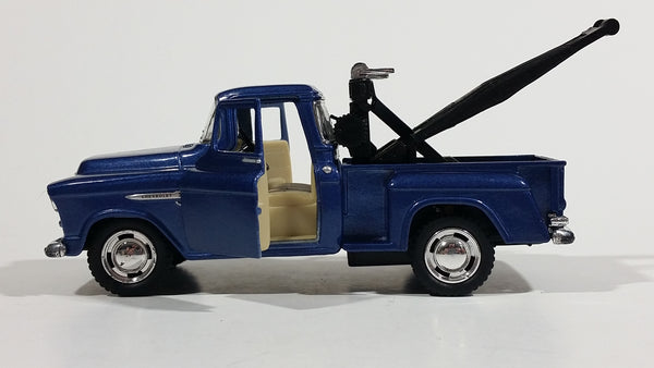 Kinsmart 1955 Chevy Stepside Pickup Tow Truck Blue Friction Pull Back Die Cast Toy Car Vehicle with Opening Doors - Missing the hook and the strings