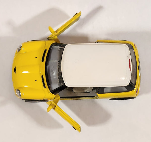 Kinsmart New Mini Cooper Yellow with White Roof Pull Back 1/28 Scale Die Cast Toy Car Vehicle with Opening Doors