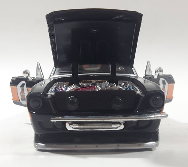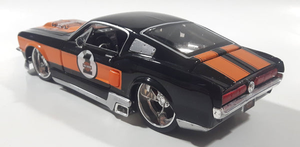 Maisto Harley Davidson Motor Cycles 1967 Ford Mustang GT Black and Orange 1/24 Scale Die Cast Toy Car Vehicle with Opening Hood, Trunk, and Doors