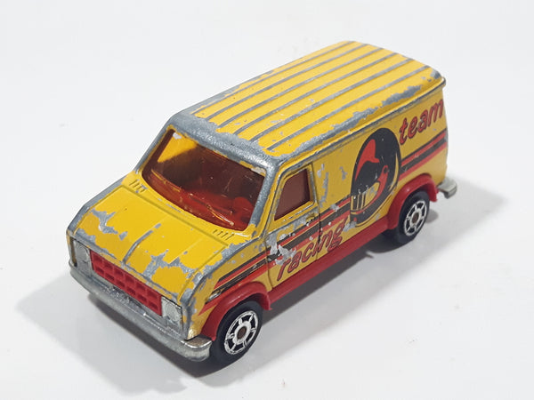 Majorette No. 279 / 234 Fourgon Van Racing Team Yellow Red 1/65 Scale Die Cast Toy Car Vehicle with Opening Rear Doors