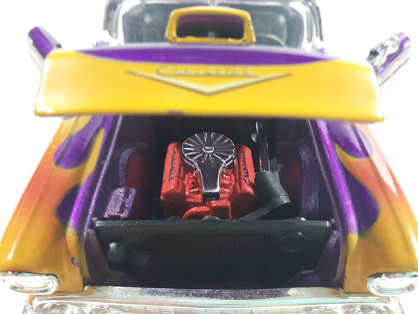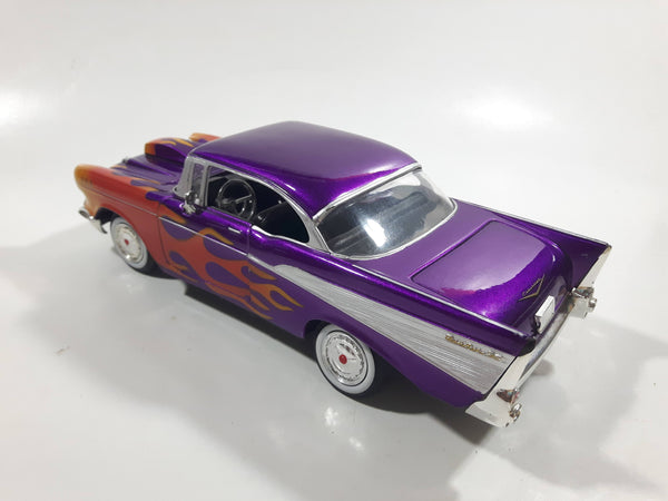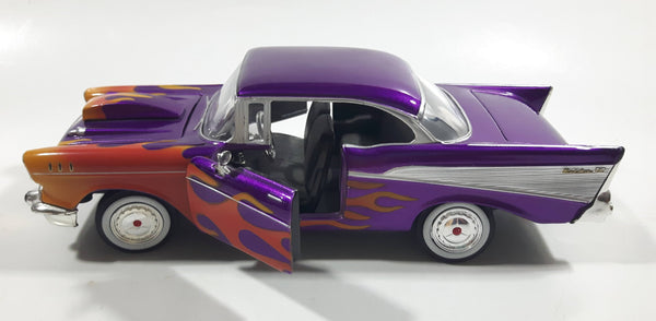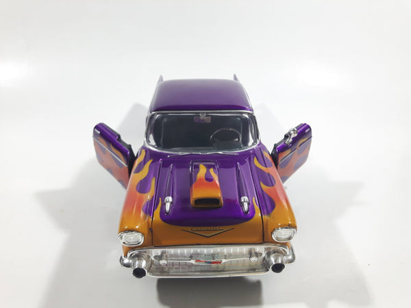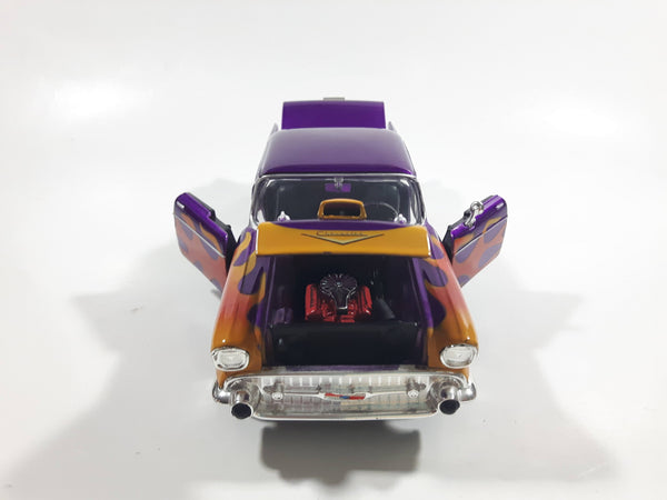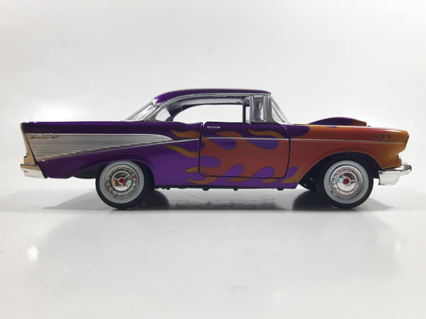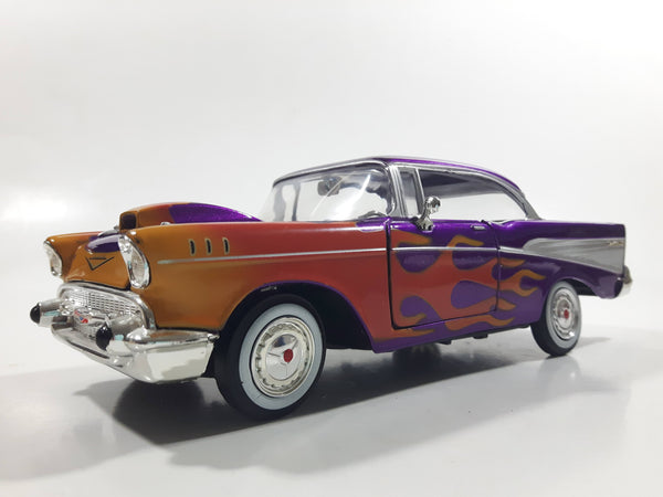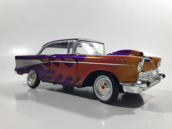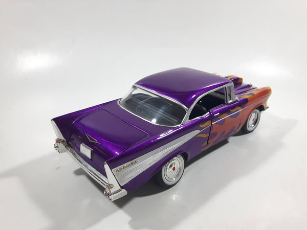 MotorMax No. 68030 / 1 1957 Chevrolet Belair Purple with Orange Flames 1/24 Scale Die Cast Toy Classic Car Vehicle with Opening Hood, Trunk, and Doors