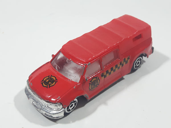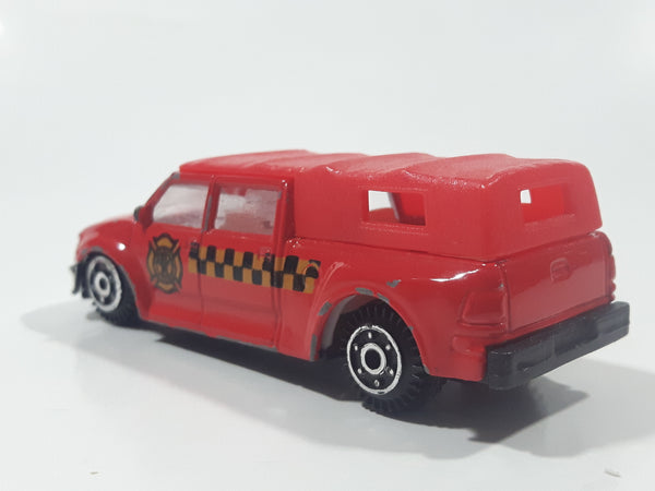 Unknown Brand Quad Cab Pickup Truck with Cap Fire Department Red Die Cast Toy Car Vehicle