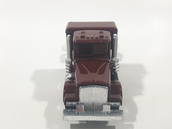 Unknown Brand Semi Tractor Truck Burgundy Die Cast Toy Car Vehicle with Opening Hood