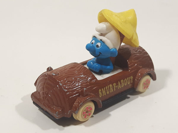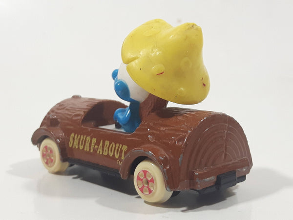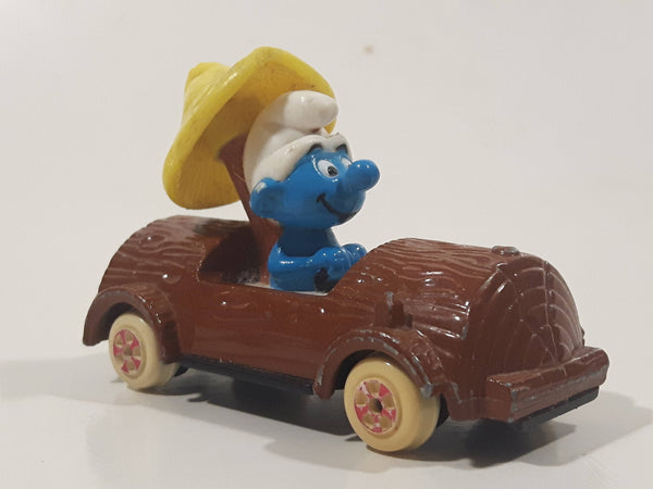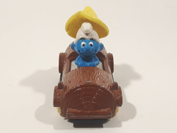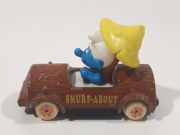 Vintage 1982 Ertl Peyo Smurf #3 Smurf-About Brown Log Die Cast Toy Car Vehicle