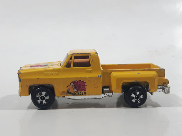 Vintage Chevy Stepside Truck "Apache" Yellow Die Cast Toy Car Vehicle Made in Hong Kong