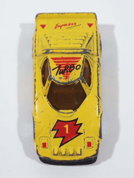 Vintage No. W11 Lancia Stratos Turbo Express #1 Yellow Pull Back Die Cast Toy Car Vehicle