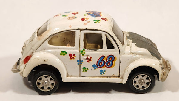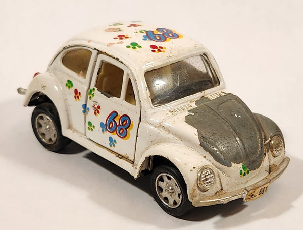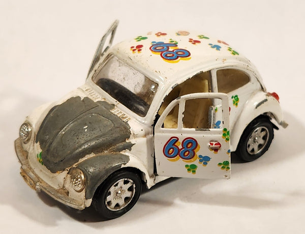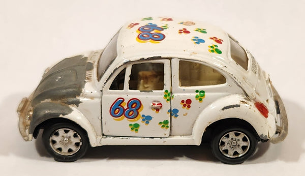 Volkswagen Beetle Bug #68 White with Paw Prints Pull Back Die Cast Toy Car Vehicle with Opening Doors