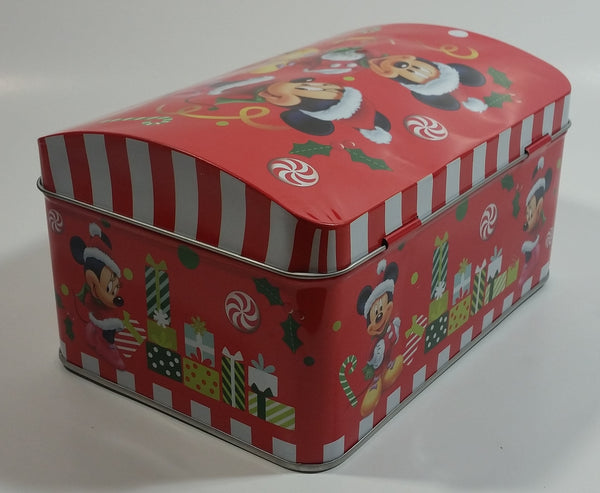Disney Mickey Mouse and Minnie Mouse Christmas Themed Hinged Tin Metal Container