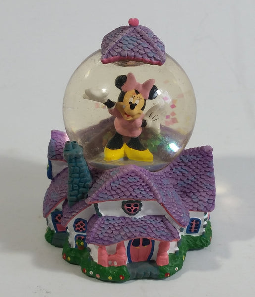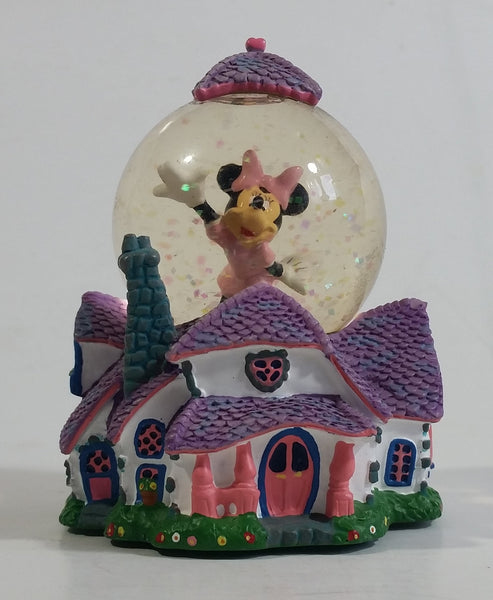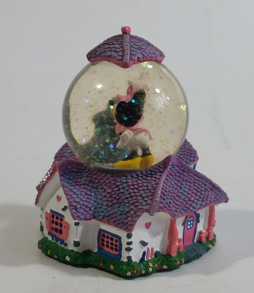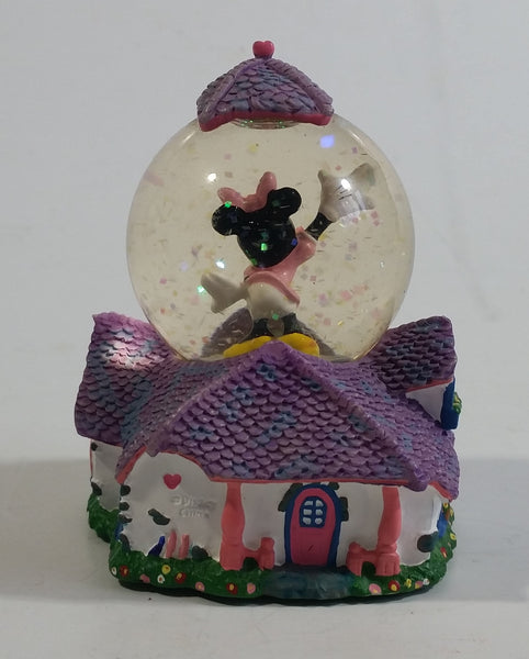 Disney Parks Authentic Original Minnie Mouse on House Miniature 3 1/8" Tall Snow Globe Collectible