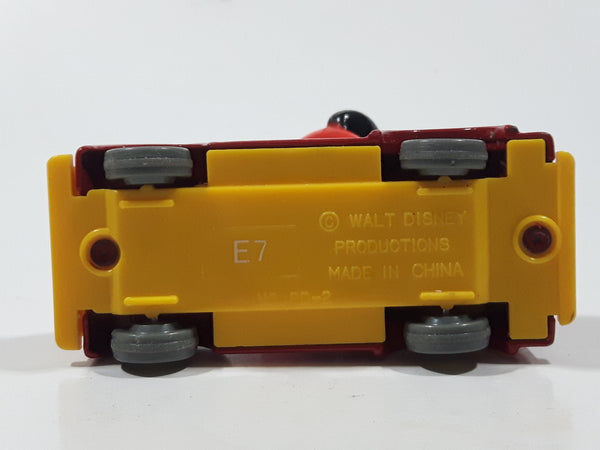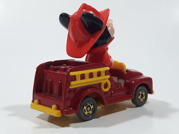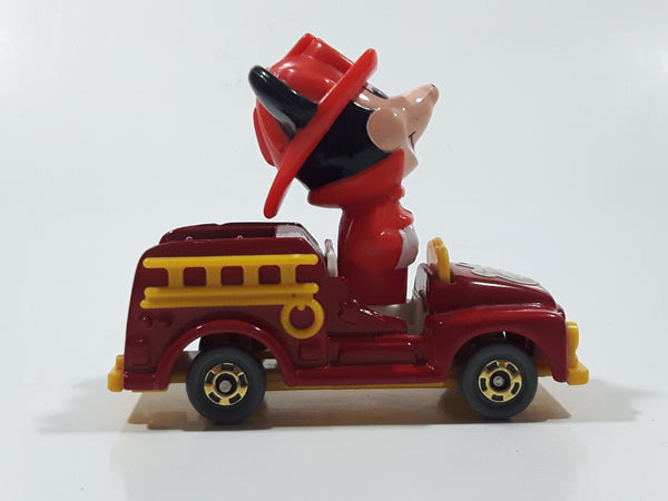 Vintage Tomy Walt Disney Production No. PD-2 Mickey Mouse Fireman Red and Yellow Plastic and Die Cast Metal Toy Car Fire Truck Firefighting Vehicle