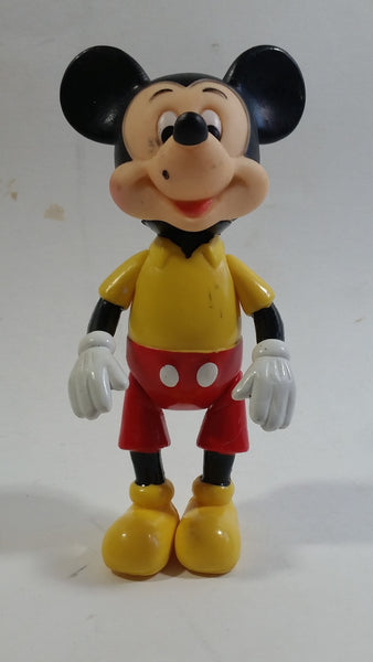 Vintage Walt Disney Productions Mickey Mouse Cartoon Character 5 1/2" Articulated Hard Rubber Toy Figure Made in Hong Kong