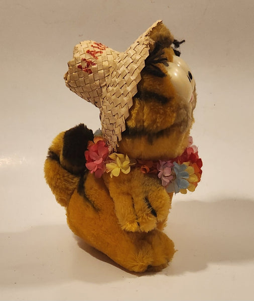 1978 1981 Dakin Paws Garfield Aloha Hawaii with Lei and Straw Hat 6 1/2" Tall Toy Plush Stuffed Character