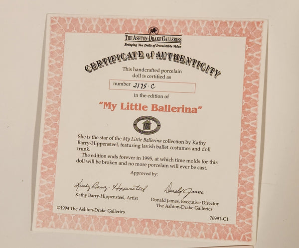 Ashton Drake My Little Ballerina 16" Tall Porcelain Doll New Condition in Box #76991