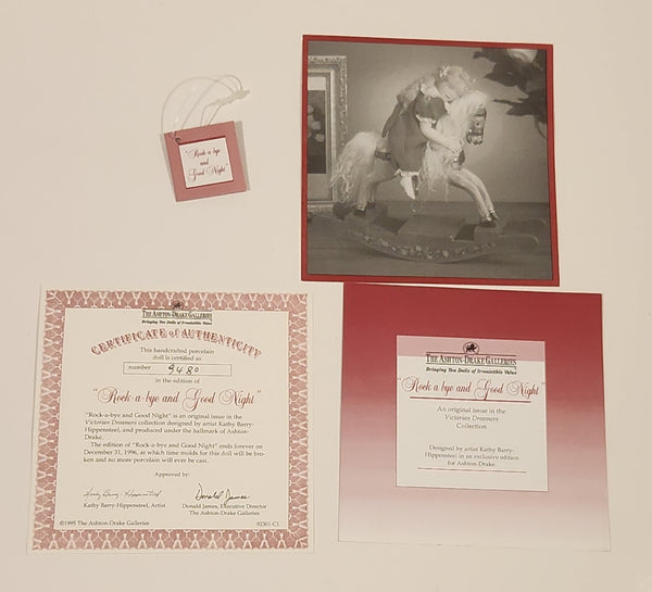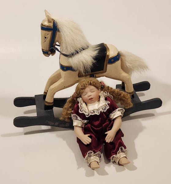Ashton Drake Rock-A-Bye And Good Night 10" Tall Porcelain Doll on Rocking Horse New Condition in Box #92301