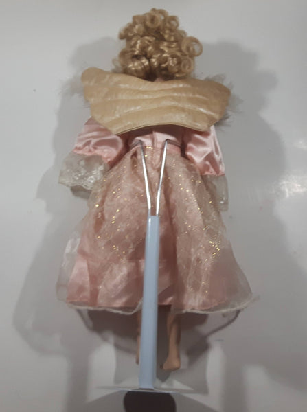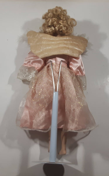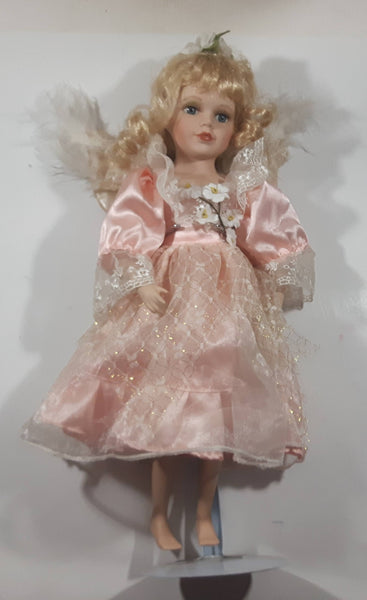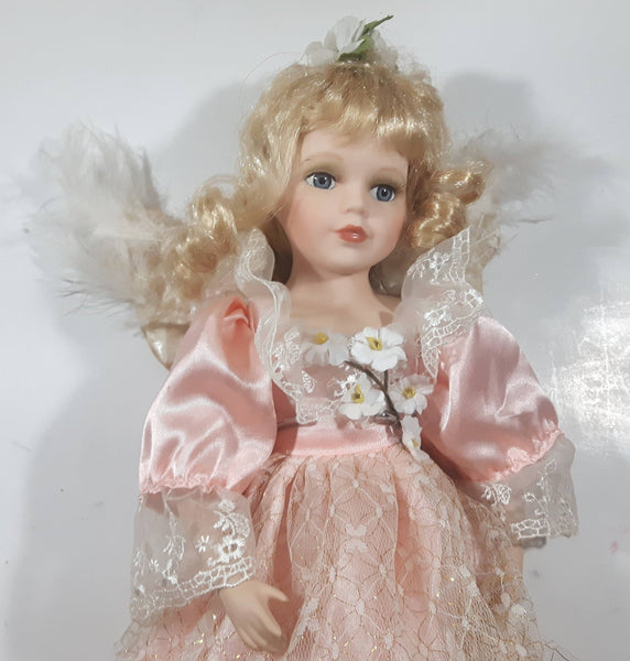 Pink Dress Porcelain Angel with Wings 17 1/2" Tall Doll with Stand