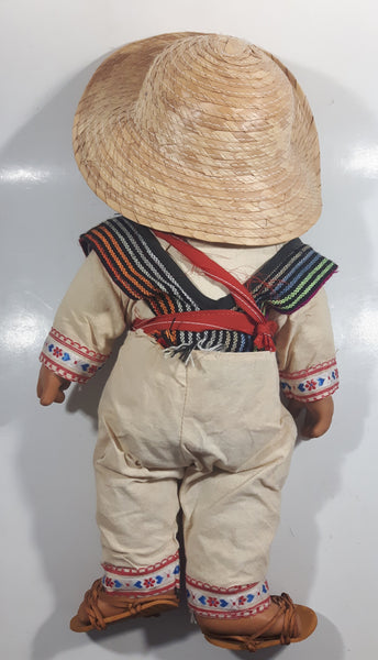 Vintage 1950s Mexican Folk Art Boy Doll with Traditional Clothing and Sandals 16" Tall
