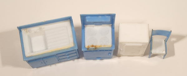 Vintage 1960s Blue and White Kitchen Furniture Miniature Plastic Dollhouse Toys Made in Hong Kong