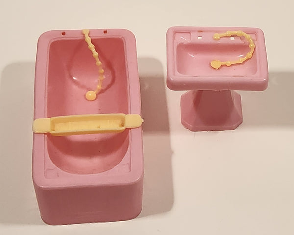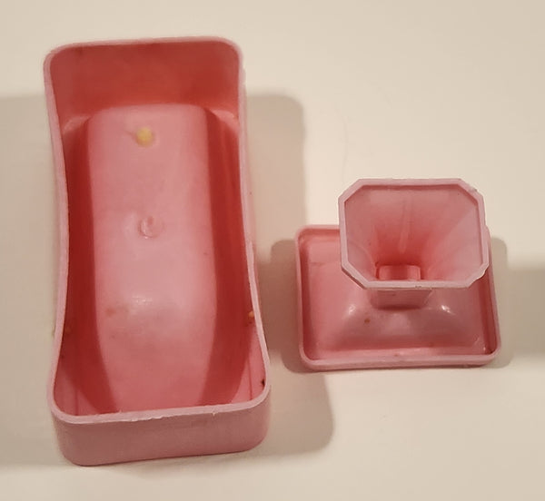 Vintage 1960s Pink Bathroom Furniture Miniature Plastic Dollhouse Toys Made in Hong Kong
