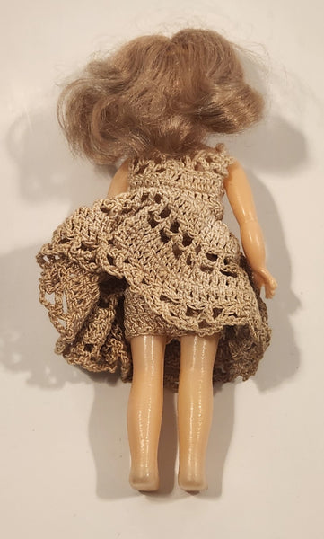 Vintage 1960s Strawberry Blonde Hair Crochet Dress 7" Plastic Toy Doll Made in Hong Kong