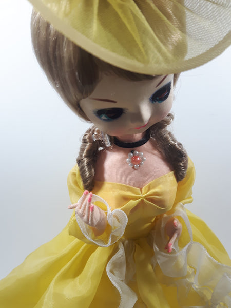 Vintage 1970s Bradley Artmark Big Eyes Phyllis Southern Belle Yellow Dress 16" Tall Toy Fabric Doll Figure