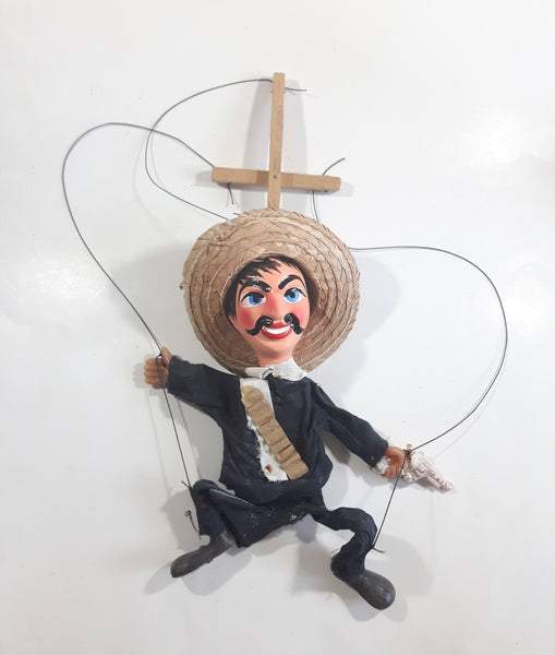 Vintage Mexican Mariachi Style Marionette Puppet with Sombrero and Gun with Wood Handle 14-15"