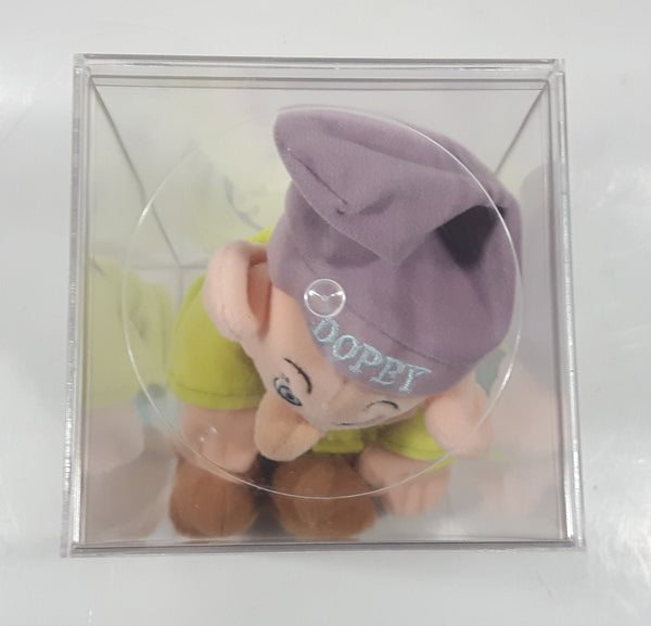 Walt Disney World Snow White and The Seven Dwarfs Dopey 7 1/2" Tall Toy Stuffed Plush Character in Display Case