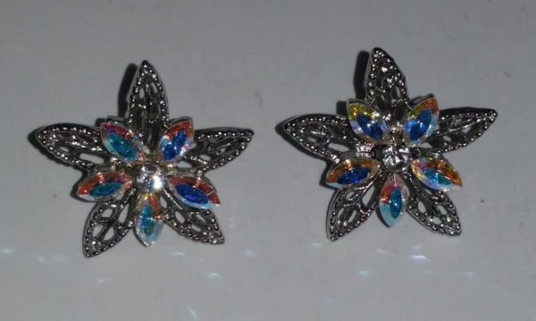 Blue and Iridescent Rhinestone 5 Point Star Shaped Earrings