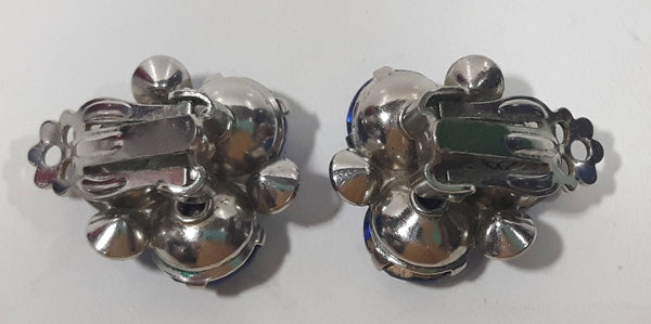 Butterfly Pattern Blue Sapphire Rhinestones 5/8" x 7/8" Clip On Earrings