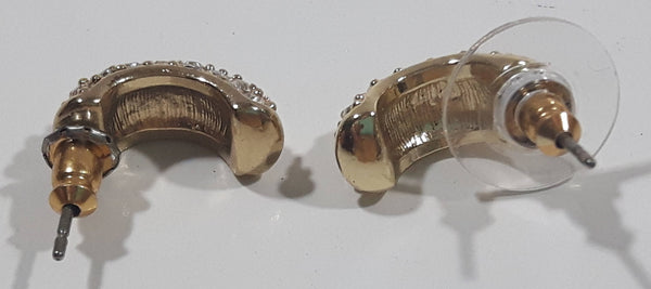 Clear Sparkling Rhinestone Curved Crescent Shaped Gold Tone Metal Earrings