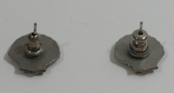 Detailed Seashell Clam Shell Sterling Silver Style Metal Stud Earrings
