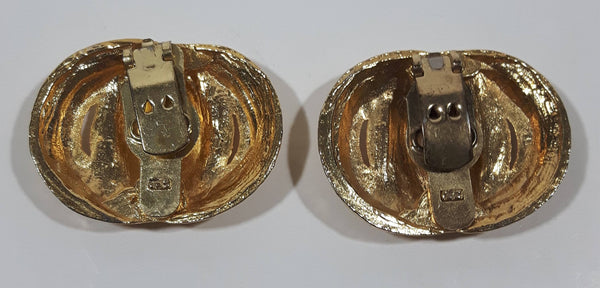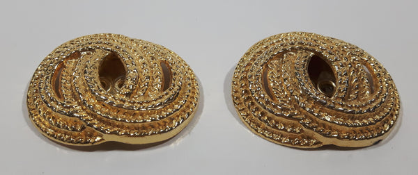 Vintage Gold Tone Rope Swirl 1 1/8" x 1 1/2" Clip On Earrings