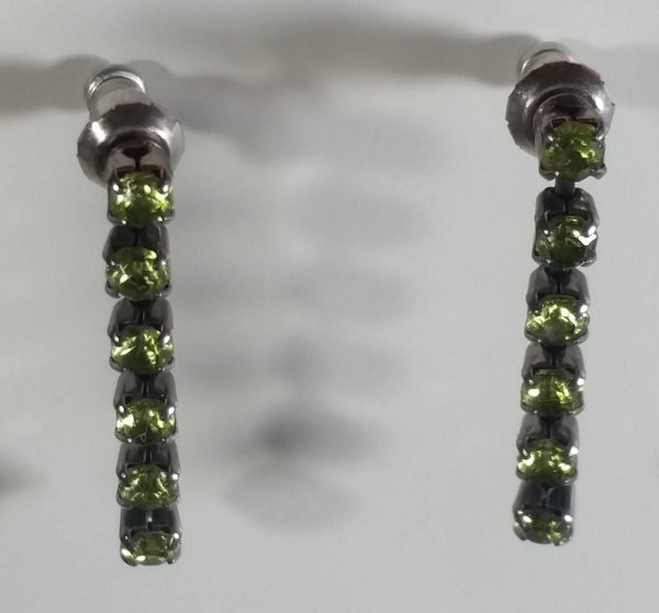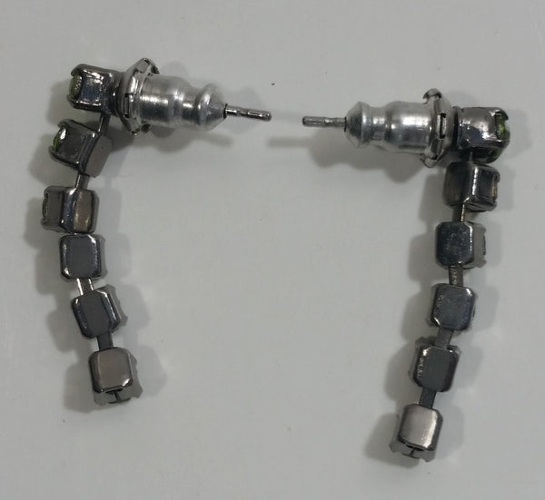 Vintage Green Peridot Style 1" Length Rhinestone Dangle Stud Earrings