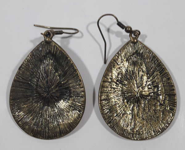 Vintage Pink Enamel Droplet Shaped 1 1/2" Metal Fish Hook Earrings