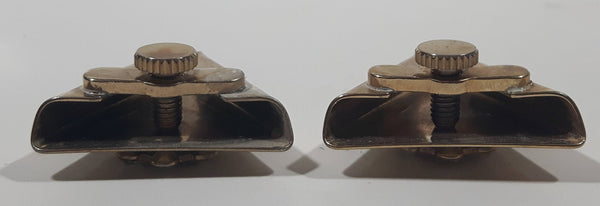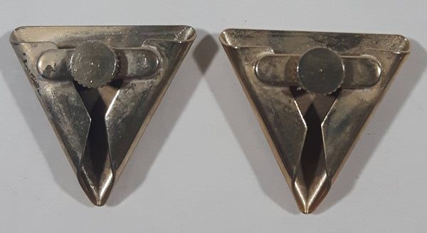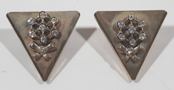 Vintage Rotary and Ribbon Rhinestone Triangle Shape Metal Clip On Screw Back Earrings