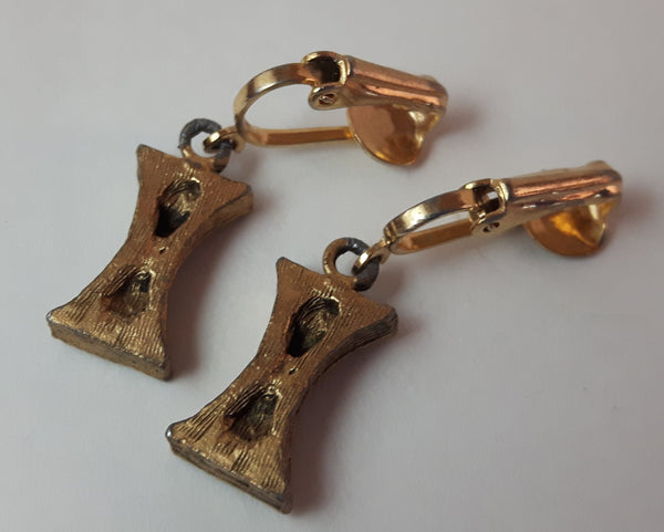Vintage Ruby Red Rhinestone Gold Tone Clip On Earrings Not Signed
