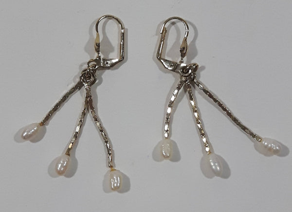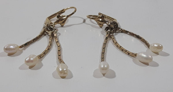 Vintage Triple Dangling Pearl Gold Tone Clip On Earrings