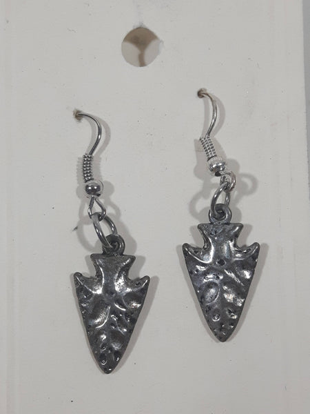 Western Indian Arrowhead Shaped Dangling Metal Earrings Canadian Crafted