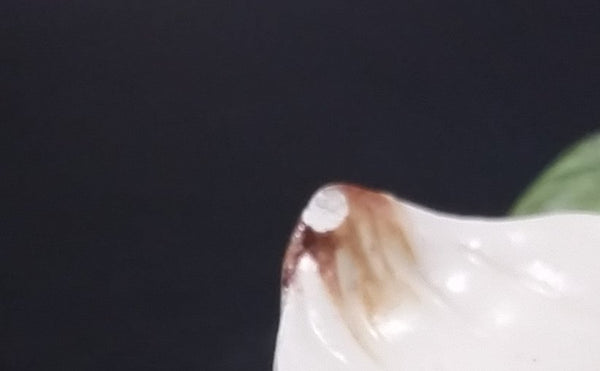 Tiny chip on the tip of one of the petals otherwise in perfect condition. Has a hanger on the back. View photos.