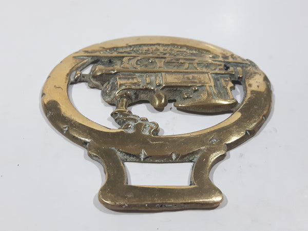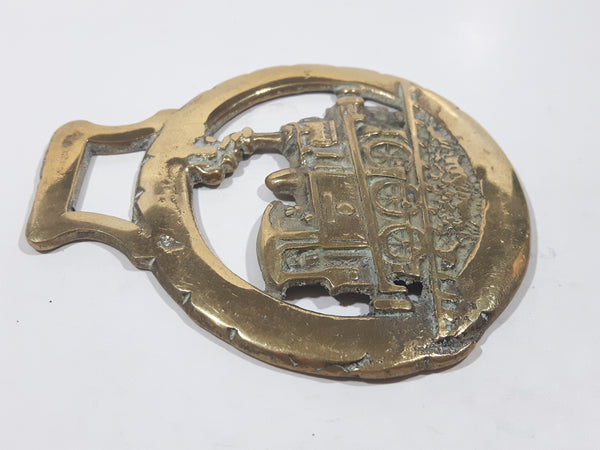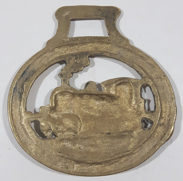 Antique Steam Engine Train Locomotive Horse Brass 3 1/4" x 3 3/8"