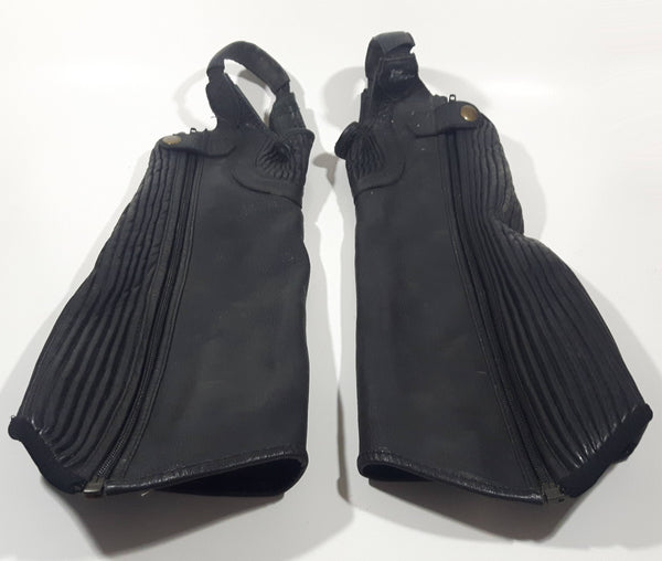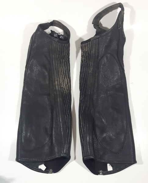 Black Leather Horse Riding Shin Guards 18" Long Size Small