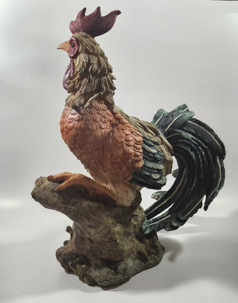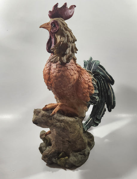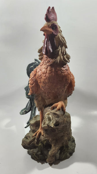 Rooster Chicken on Log 14" Tall Resin Sculpture